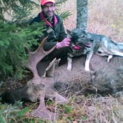 We offer trophy moose hunting in Finland as additional option on same areas and principals as whitetail hunts. We do also offer moose hunting with dogs for individual hunters or groups. This is the best way to hunt a trophy bull in forested parts of Finland. Bulls start to shed antlers in December-January.